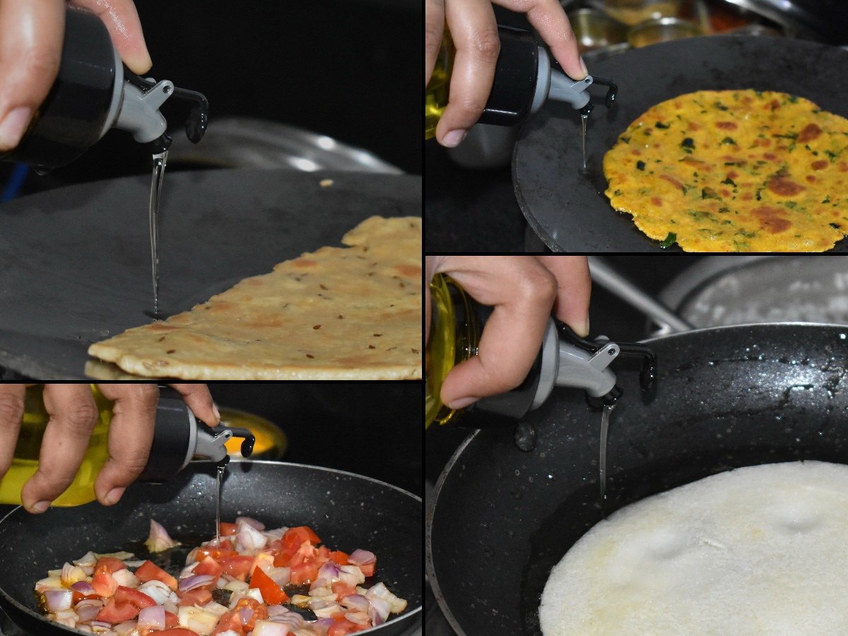 • Designed with a drip-free spout, our dispensers ensure mess-free pouring without spilling, sloping, or leaking. You can now eliminate the hassle of dressing salads and add a distinct flavour to your meals.