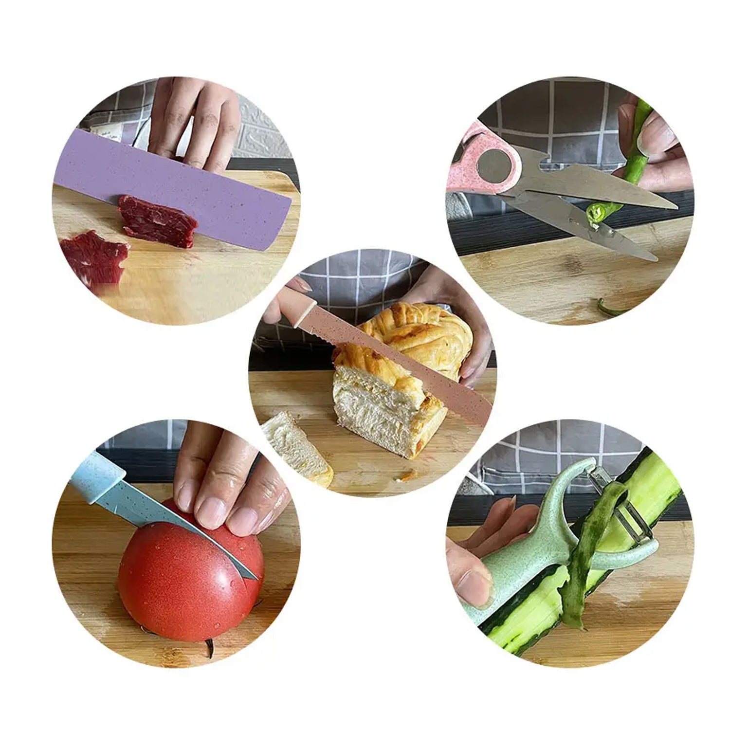 2948a Professional Colorful Kitchen Knives Set Of 6 Pieces Non-stick Blades With High Carbon Stainless Steel Sharp Kitchen Cutting Knives Set For Slicing Paring And Cooking Chef Kitchen Knives Set