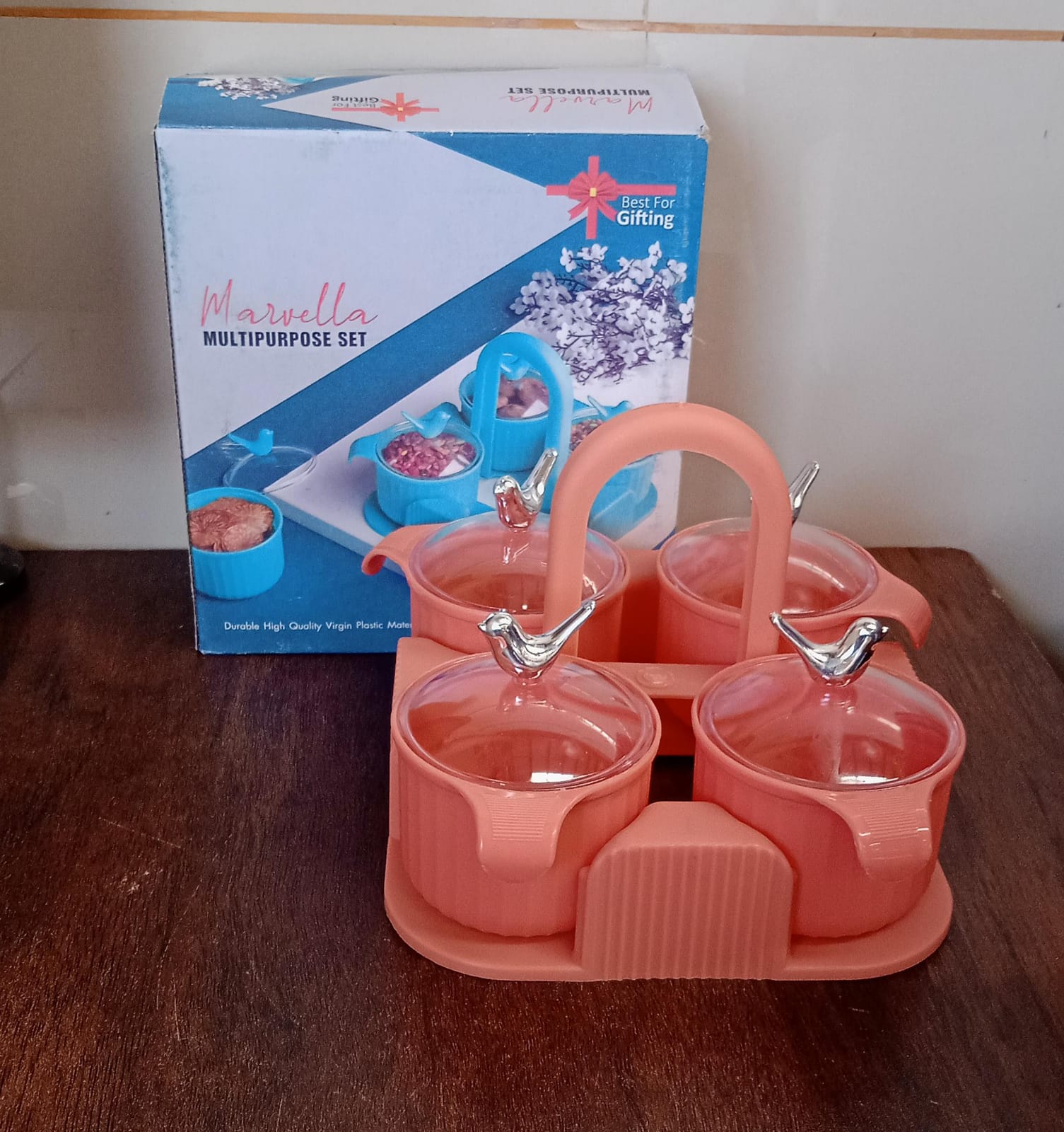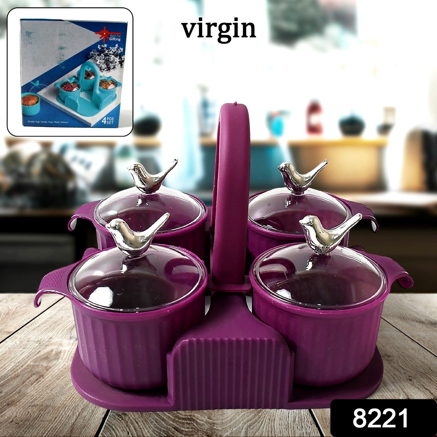 8221 Multipurpose Silver Sparrow, Jar Dry fruit Set, for Home and Kitchen Airtight Dry Fruit Plastic Storage Container Tray Set With Lid & 4 Serving Jar Container for Sweets, Chips, Cookies | (4 Pc Set)