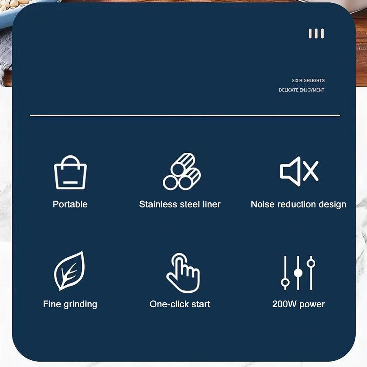 • Efficient electric grinder that grind coffee beans, rice, yam, rock sugar, corm, dry pepper and other nuts in low-noise.